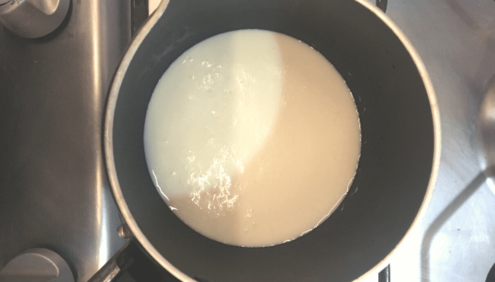 Nel frattempo versa la panna il un pentolino e scalda fino a formare le prime bollicine ma spegni il fuoco poco prima che inizi a bollire.
