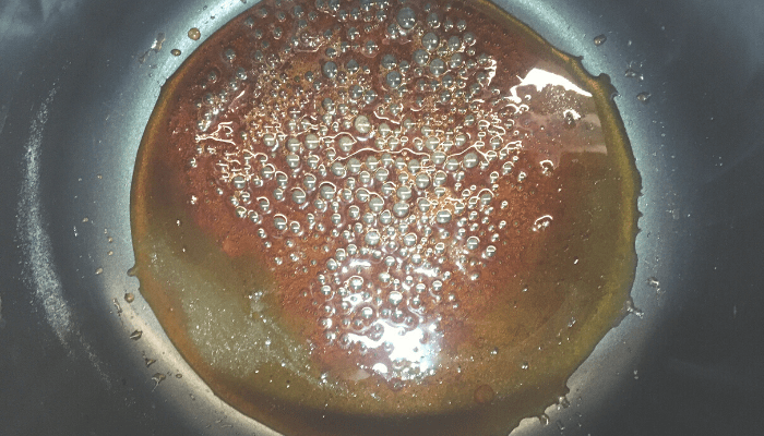 - Per prima cosa versa 100 gr di zucchero semolato all’interno di una pentola antiaderente dai bordi alti. Accendi la fiamma e fai andare a fuoco vivace.